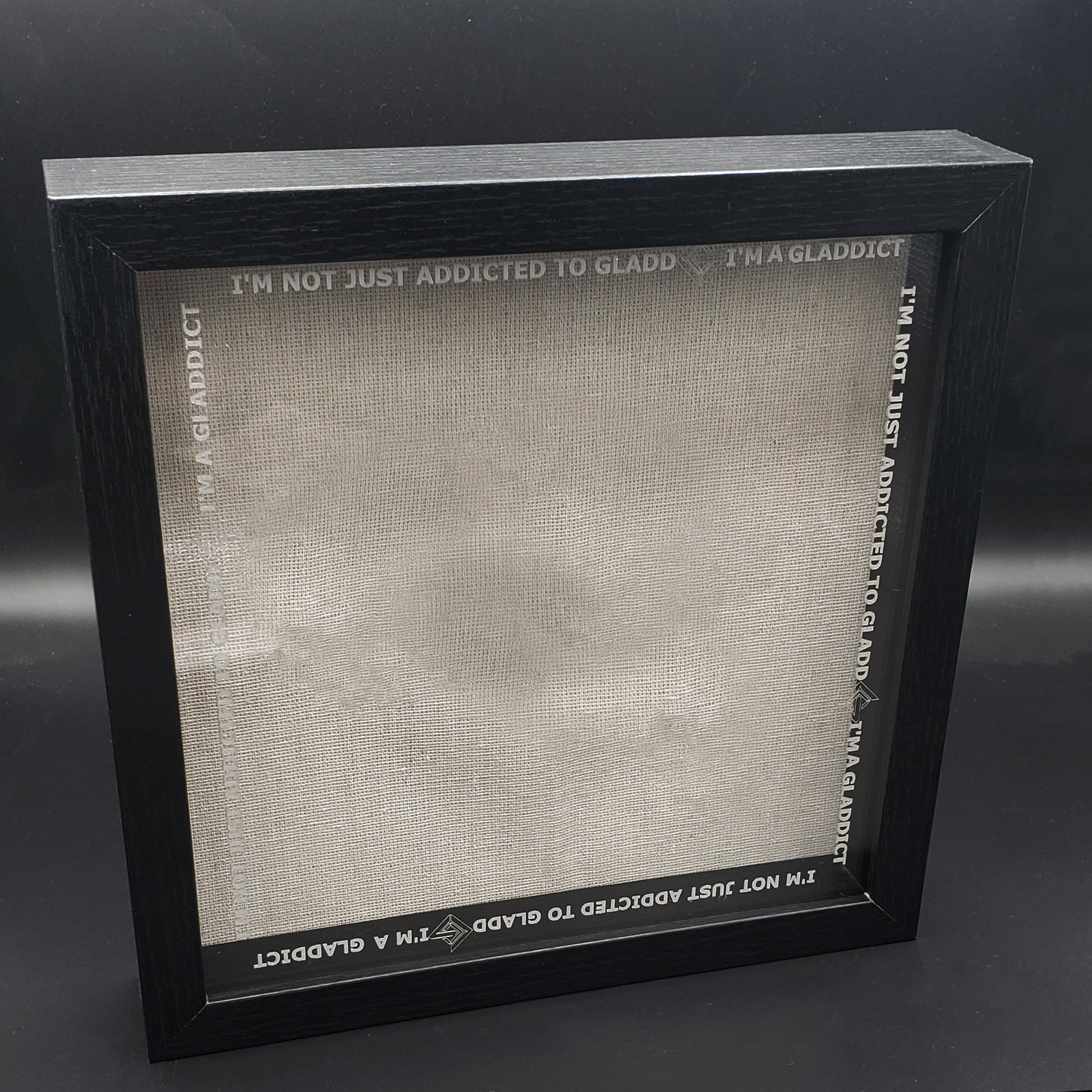 *Shadowbox will come with "I'M NOT JUST ADDICTED TO GLADD I'M A GLADDICT" etched around glass
