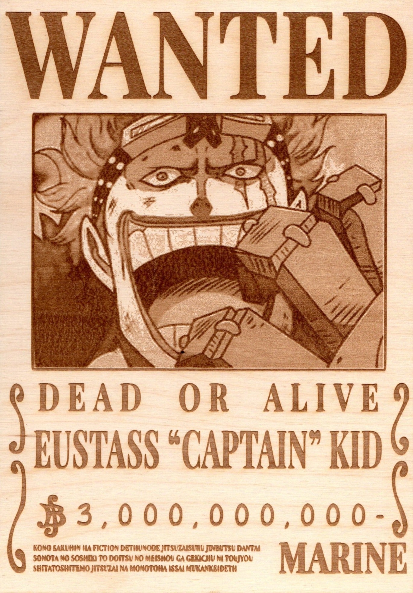 One Piece - Eustass "Captain" Kid Wooden Wanted Poster