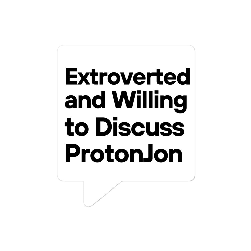 ProtonJon - Bubble Free 4" X 4" Sticker - "Extroverted and Willing to Discuss"